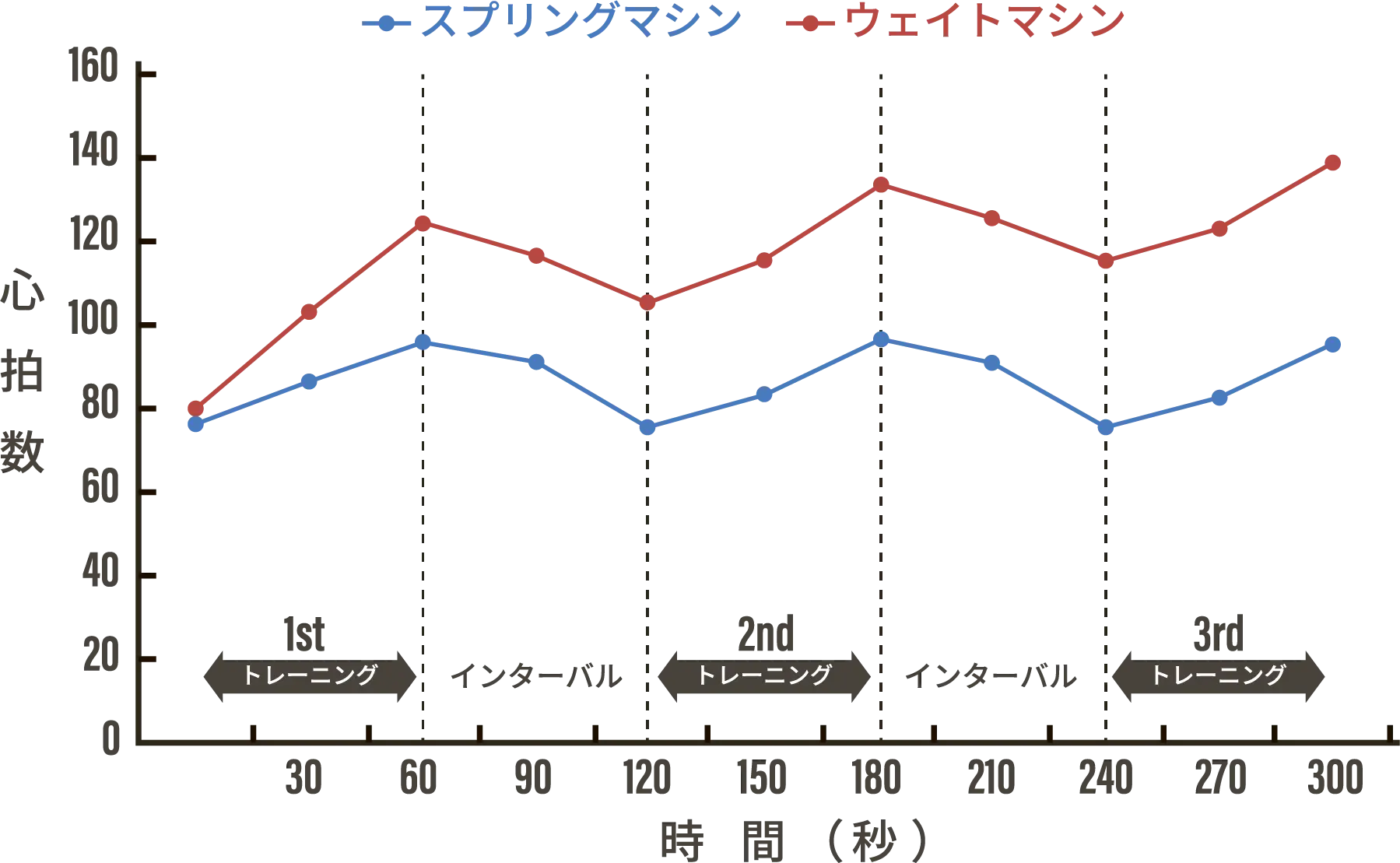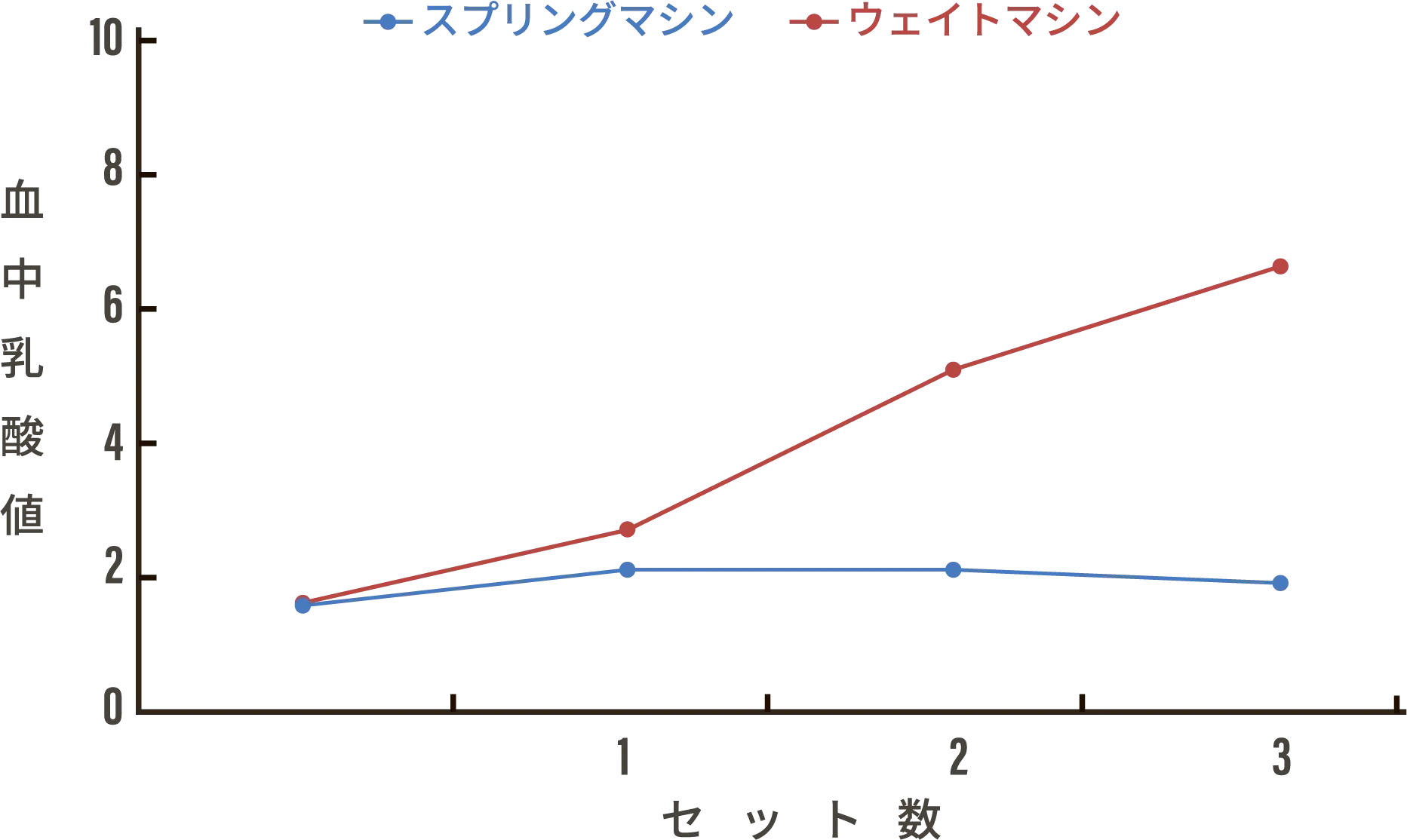 心拍数・血中乳酸値が従来のマシンよりも優位に